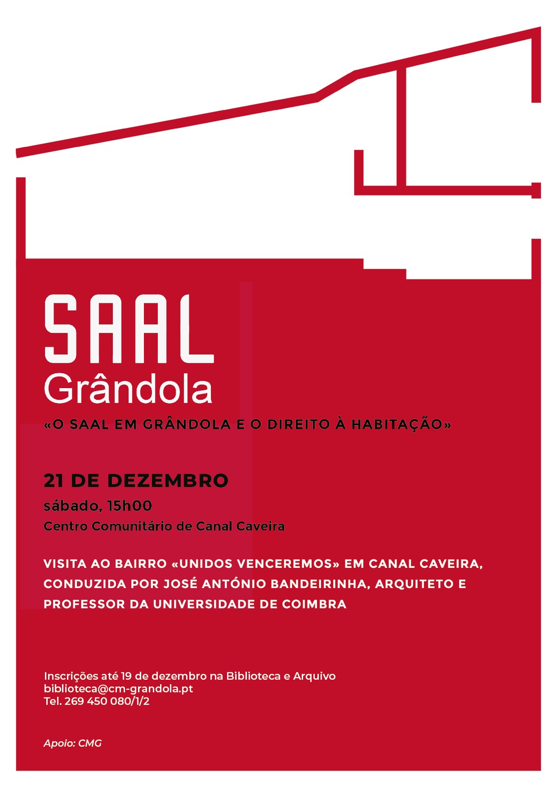 No âmbito da Exposição «O SAAL em Grândola e o Direito à Habitação» vai realizar-se a visita ao Bairro «Unidos Venceremos» em Canal Caveira, projetado pelo arquiteto Manuel Tainha. A visita será conduzida por José António Bandeirinha, Arquiteto e Professor da Universidade de Coimbra.