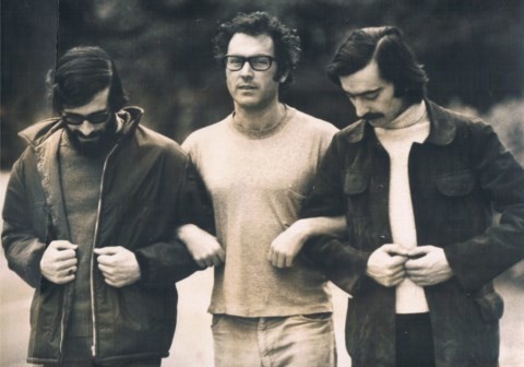 Legenda da foto: Os passos de Grândola, vila morena: José Afonso, José Mário Branco e Francisco Fanhais. Castelo d’Hérouville, 1971.